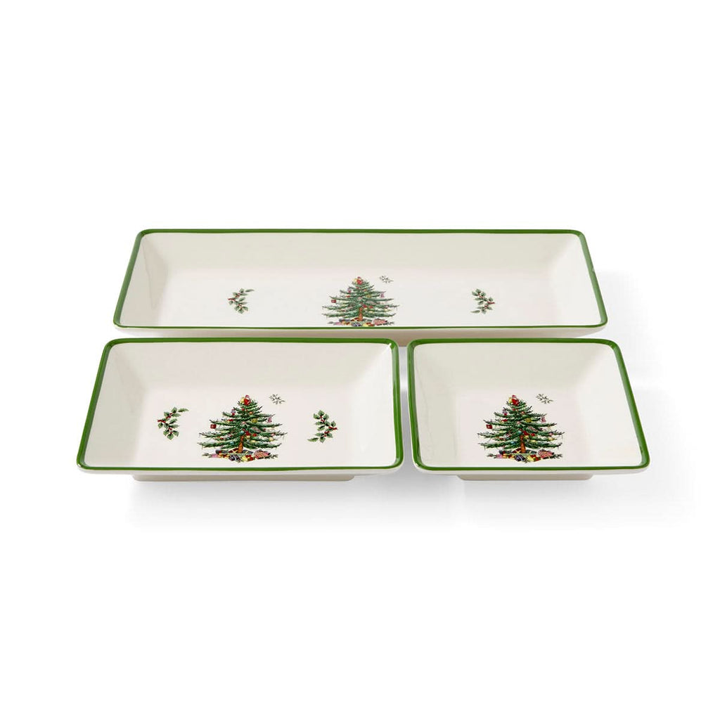 Dimensões: Bandeja Grande 33 cm × 14 cm × 3,2 cm , Bandeja Média 19 cm × 14 cm × 3,2 cm, Bandeja Pequena Quadrada 14 cm × 14 cm × 3,2 cm