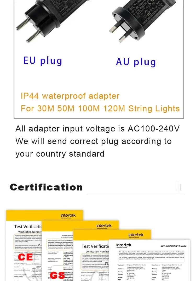 - Adaptador à prova d'água IP44 e luzes IP65